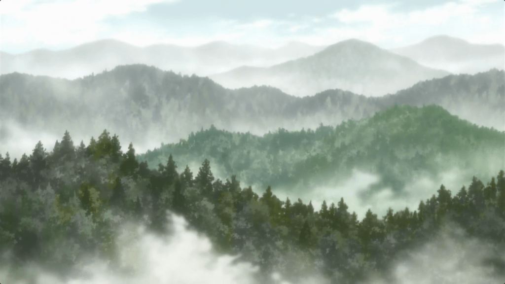 Llevo varias semanas dándole vuelta a la relación que mantienen nuestras actividades con el territorio, incluso con la Tierra, y un par de años pensando en la agencia de los espacios y de la vida no-orgánica. El lugar más pequeño sin duda ofrece cosas que pensar al respecto. El ensamblaje que estas personas componían con el territorio reformaba por completo una relación muy antigua de utilidad y provecho. Que estos bosques y cerros se conviertan en algo más que la extensión del hogar campesino o sea algo más que una diferencia radical, me parece maravilloso. No solo es que este espacio sea también cementerio, es un sobreviviente más, está henchido de voces y presencias. Su presencia está cargada y presenta una vida completa, elocuente, como muchas veces sucede, por ejemplo, en Mushishi [1], donde la vida está presente en el territorio de una manera especial: participa de las narraciones y no solo desempeña el papel de superficie pasiva sobre la cual los cuerpos se mueven. En Mushishi, los bosques y montañas son espacios que expresan su vida de múltiples maneras y el tono de las historias de Urushibara nos hace sentir siempre que el territorio nos mira de vuelta, poblada de vidas misterioras. Así, el plano general deja de ser una transición pasiva, pues ahora está cargada con estas vidas. Ocurre en ambas ficciones, entonces, que el plano general se carga gracias de una función más amplia que la meramente descriptiva y recondiciona lo que vemos a continuación, nos ofrece el espacio material en el que los cuerpos se encuentran y la vida se expresa.