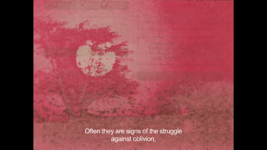 Estos apuntes fueron entonces una serie de especulaciones que surgen del encuentro de estas imágenes y sus materialidades en la película. El exceso está en todas las conexiones que me suscita su cercanías y distancias y que encuentran una continuación en la escritura.