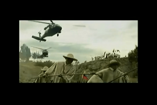 A punta de repetición en mí quedó la imagen del guerrillero asociado a la selva como representación del mal (todo muy cristiano también, por supuesto). Así, se parte del principio de que la guerra no solo se libra en la selva contra los insurgentes, sino también en el campo simbólico, con la elaboración de un discurso que crea dos bandos claramente identificables y, en el campo de lo sensible, con la creación de imágenes que quedan fijadas en nuestra subjetividad. Son muchas las que puedo recordar: los helicópteros sobrevolando una selva espesa, los secuestrados con grilletes rodeados de la impenetrable naturaleza, los campamentos de cocaína escondidos en la frondosidad selvática, el sonido de los fusiles en los combates, y así.