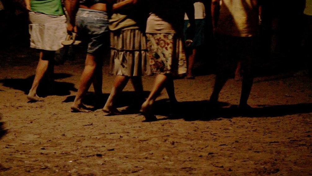Otro momento crucial de este proceso de enrarecimiento es la secuencia final del baile de la comunidad indígena. Toda la composición, incluidos los ángulos cerrados y el manejo de la luz, crean un aura de extrañamiento tal que estas personas parecen presencias de otro mundo. Aquí no tenemos la cámara etnográfica que con claridad filma a estas comunidades (por ejemplo, en planos fijos muy descriptivos), ni la voz explicativa que nos van contando los significados de estos “ritos”. Por el contrario, no entendemos realmente qué está sucediendo, y lo que se crea es una escena casi fantasmagórica. El sonido crea una fuerte sugestión gracias a la fusión entre la música inmersiva y la música tradicional de este baile. Aunque aquí no se trata de “simular” un trance (recordando, por ejemplo, la película The Mad Masters (1955), de Jean Rouch), sino de generar este punto de vista de extrañeza.