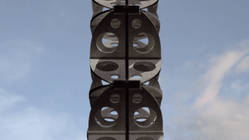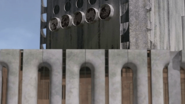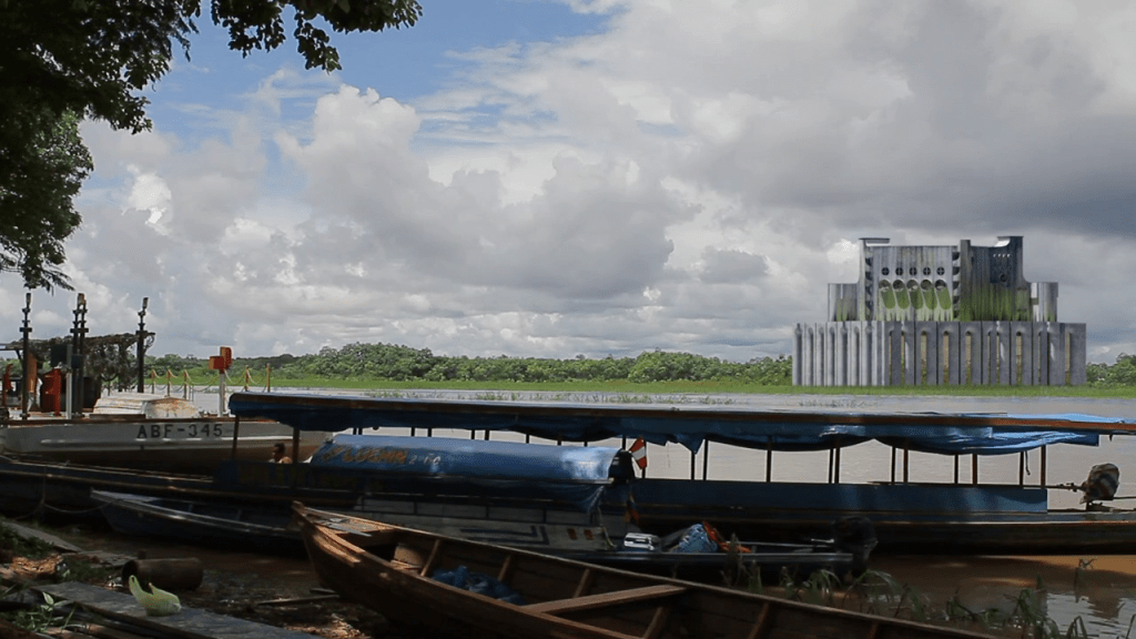 El más importante, sin duda, es la alteración de la composición interna de las tomas documentales al introducir enormes ruinas de edificios de concreto de estilo brutalista por medio de un modelado digital. Estos elementos rompen por completo con cualquier idea de registro objetivo de una geografía. El corto documental se construye entonces como una alternancia-secuencia de imágenes de la selva, de la comunidad que la habita y de la presencia fantasmagórica de esta arquitectura virtual, lo cual crea complejos paralelismos y asociaciones libres.