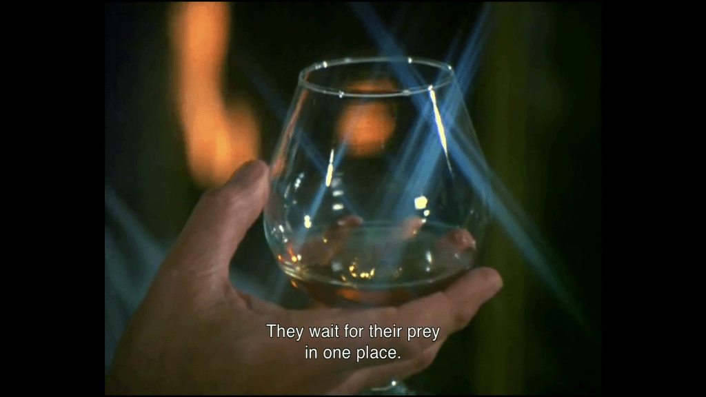 Con esto culmina ese giro que intenta mostrar que no solo las fuerzas colonizadoras moldean este mundo, sino que hay realidades más allá del hombre y del capital, presencias espeluznantes que rigen un orden más profundo y complejo, supranatural y místico. La película, de esta manera, hace un recorrido por diferentes presencias no humanas, fuerzas externas que escapan del entendimiento humano o, al menos, que no se pueden interpretar desde una experiencia corriente, desde una percepción sensitiva habitual. ¿No son acaso igual de fantasmagóricas, igual de espeluznantes, la presencia fantasmal de esas imágenes televisivas y las imágenes místicas de la selva? ¿No son, en diferente medida y con diferentes naturalezas, fuerzas que rigen los destinos de los hombres, que exceden su experiencia cotidiana?