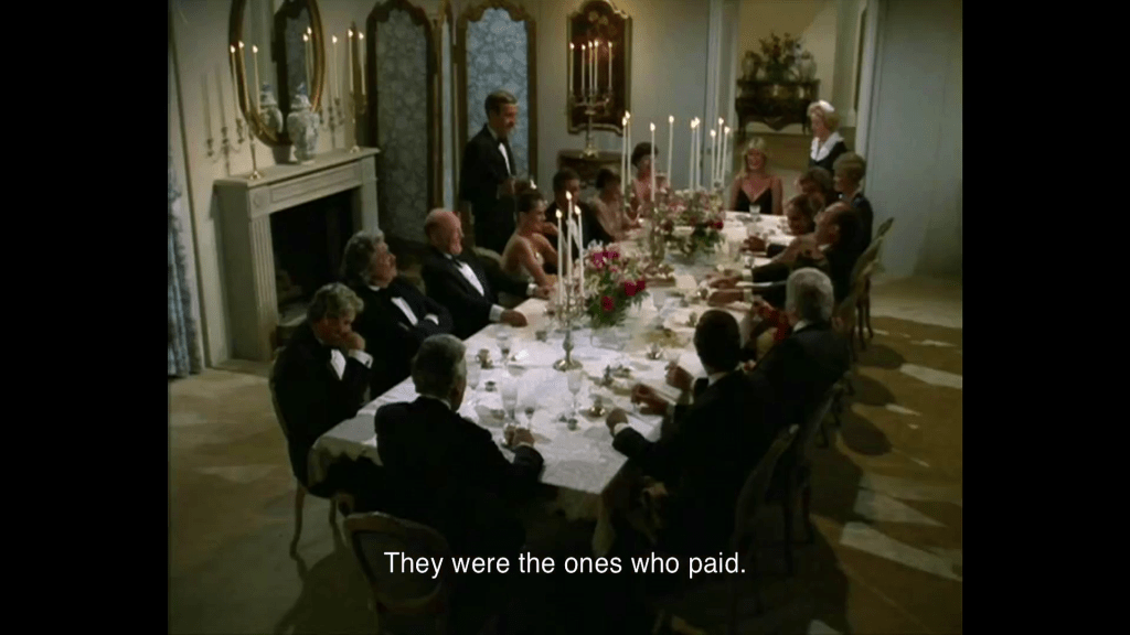 A este respecto, el montaje asociativo nos permite entrever estas “fuerzas interconectadas”, estas influencias y relaciones globales-locales que, en la simple observación de una ruina, no pueden revelarse. Así, el uso de las escenas de la serie Dinastía no se queda en el plano demostrativo o ejemplificador, en mostrar cómo era el modelo original de la réplica. Por el contrario, hay múltiples niveles de asociación que generan ideas alrededor de temas como el flujo de capital global y la influencia de los sueños capitalistas de riqueza y lujo en los narcotraficantes colombianos.