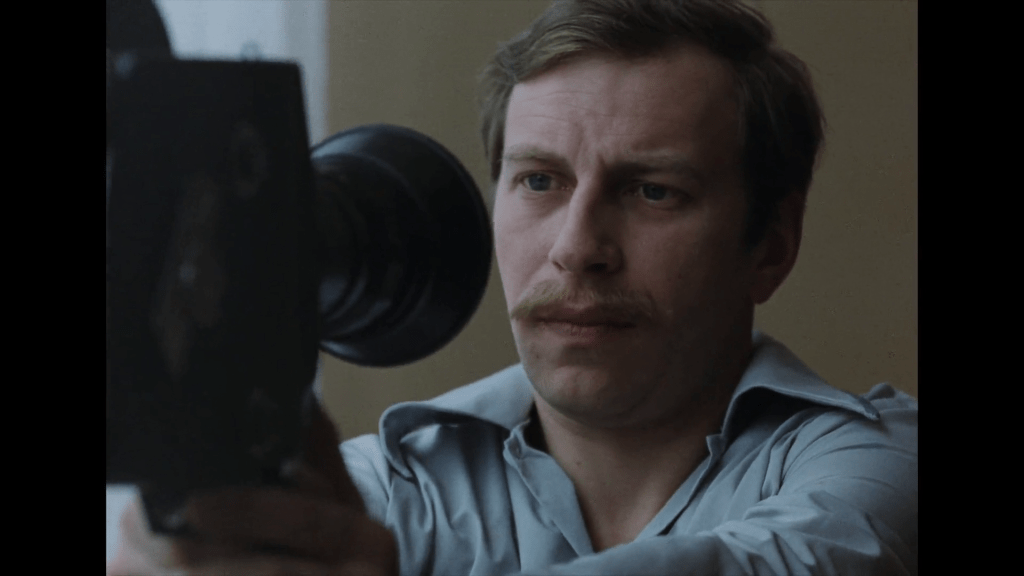 Una breve descripción de puntos mínimos para orientarnos en la película: ésta trata de un obrero en el período soviético que compra una cámara de 8mm para registrar el crecimiento de su hija. Pero una vez tiene la cámara en la mano siente su hechizo y empieza a filmar todo lo que encuentra. Al principio vemos que son solo tomas sencillas de su entorno, algo que se adapta fácilmente a la forma de ver del realismo socialista, sin embargo, su actitud va cambiando poco a poco y vemos nacer en él un interés más profundo por la imagen. Aparece una mirada propia. Esto le trae problemas en su familia, en su trabajo, en el partido comunista… Bueno, para no contarla toda, al final, en un estado de decepción e impotencia, le da vuelta a la cámara y vemos que enfoca su propio rostro y empieza a hablar de sí mismo, es decir, emerge el yo.