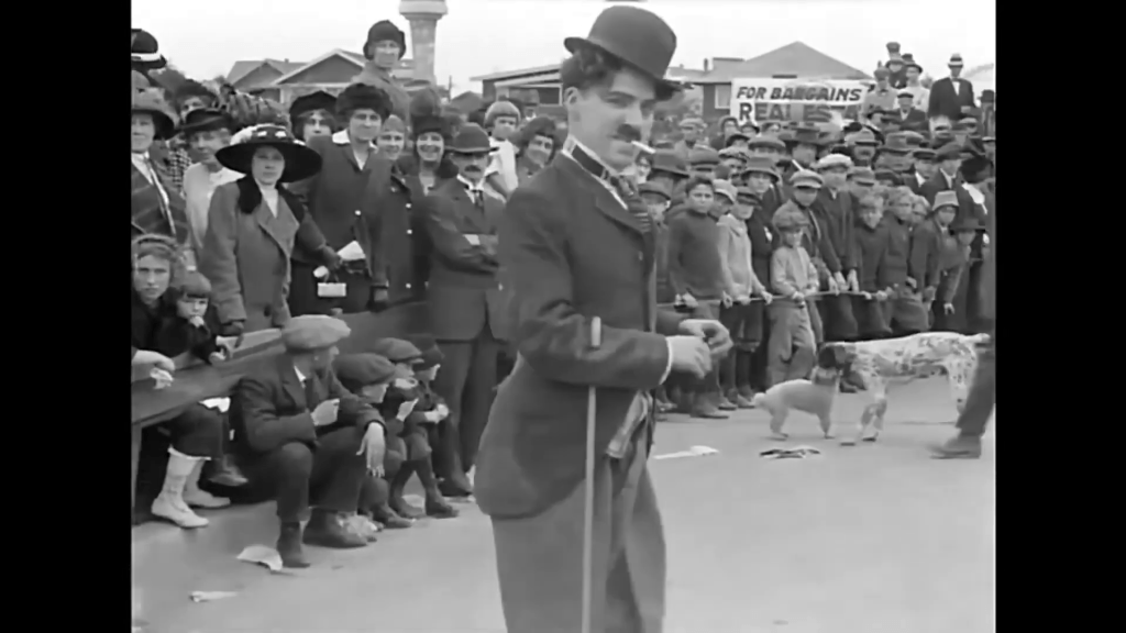 Tenemos todo esto: Chaplin posa y al fondo están las personas que fueron ese día de 1914 a ver el espectáculo, quienes miran al Vagabundo, ese ruido ficcional que ha entrado en la imagen, pero al tiempo miran a la cámara, y así sus miradas llegan a nosotros. Este cruce de miradas y de elementos nos dice una cosa: el mundo no volverá a ser el mismo desde el momento mismo que nace esa “máquina que piensa”, desde que empezamos a mirar a través de ella, a mirarla a ella, y, a su vez, ella mirarnos a nosotros. Así, esta pequeña y centenaria peliculita de 11 minutos tiene una sofisticación tal que nos abre una serie de preguntas sobre la mirada, la cámara, la subjetividad etc etc.
