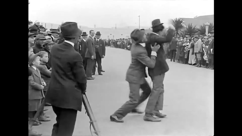Habría que preguntarse si Chaplin hace este gag basado en una escena que se repetía en aquellos años. ¿Desde el puro principio ya había personas que buscaban meterse al cuadro? ¿Hechizados por ese nuevo aparato lo buscaban para tener su atención que era la promesa de la atención de miles? ¿Cómo se relacionaban esas primeras personas con esas primeras filmaciones? ¿En qué momento se expande a todos ese afán por ser vistos y registrados?